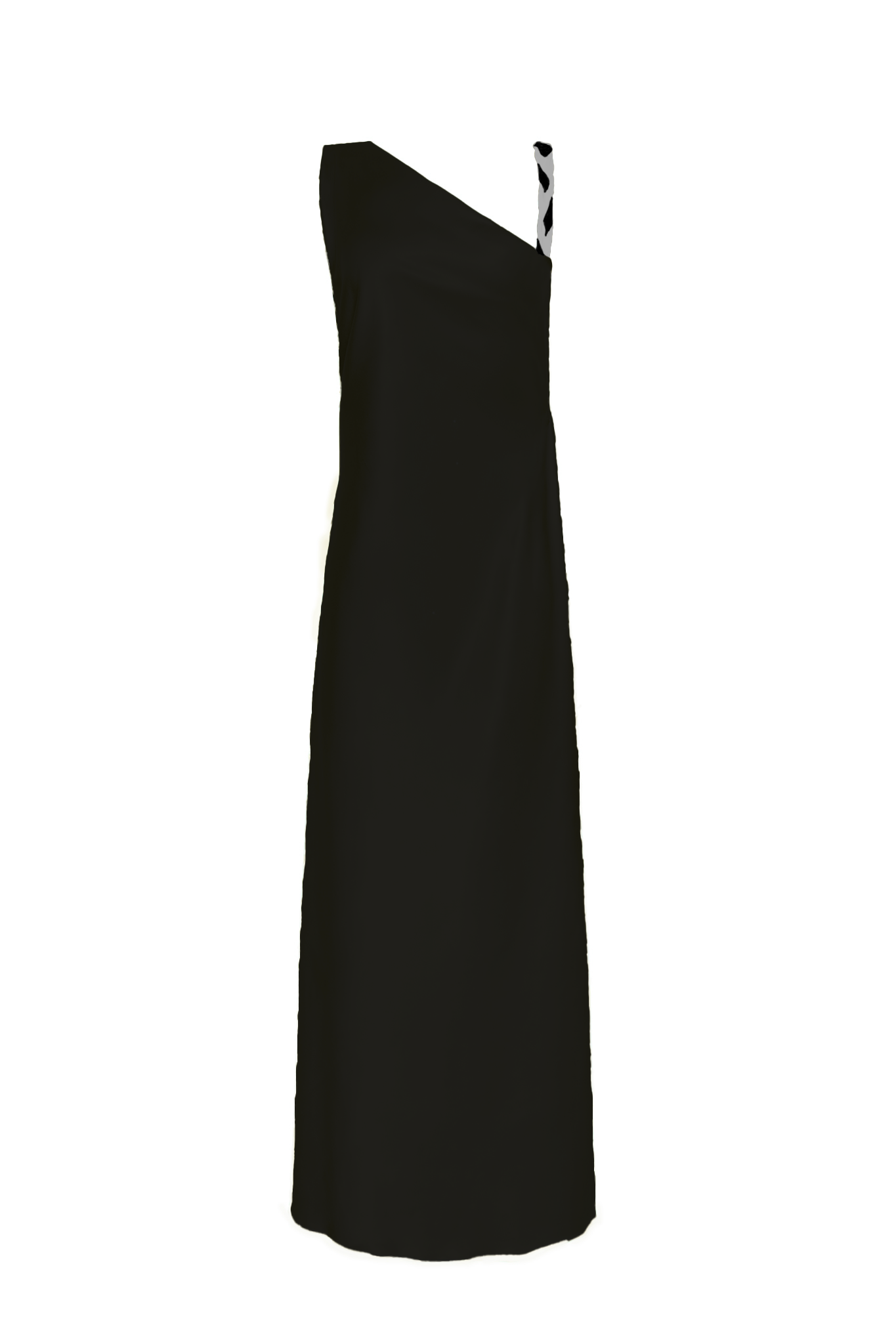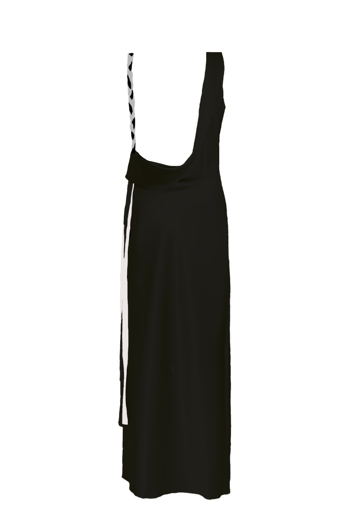 Vestido largo Escote ligeramente drapeado Espalda descubierta con detalle drapeado Tiras trenzadas en color blanco y negro